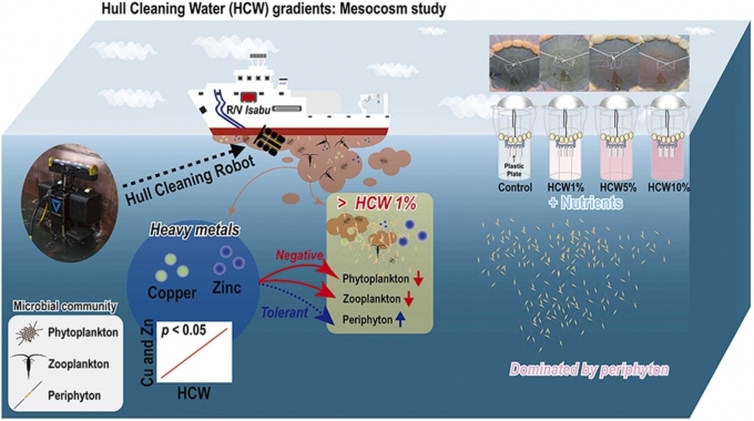 선박을 로봇으로 청소하는 과정에서 떨어져나오는 부산물이 바닷물을 오염시켜 해양생태계에 악영향을 미치는 것으로 나타났다. 한국해양과학기술원(KIOST) 남해연구소 생태위해성연구부 백승호, 이보라 박사 연구팀은 선체 수중청소로봇의 청소부산물(Hull Cleaning Wastewater, 이하 HCW)이 해양생물 군집의 구조 등에 미치는 영향을 규명했다고 27일 밝혔다...더보기
