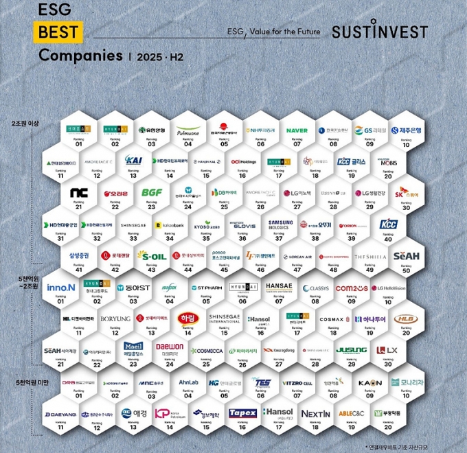 자산 2조원 이상의 대기업 가운데 현대홈쇼핑과 현대백화점, 유한양행, 풀무원, 한국지역난방공사가 올 하반기 서스틴베스트 ESG 평가에서 상위에 랭크됐다. 지난해 2위를 했던 KT는 하반기 발생한 사이버해킹 사건으로 50위 순위권 밖으로 밀려났고, 네이버는 7위로 밀렸다. 이 영향 탓인지 지난해 3위였던 현대홈쇼핑이 1위를 꿰찼다. ESG 평가기관 서스틴베스트가 국내 1299개 상장·비상장 기업을 대상으로 실시한 '2025년 하반기 ESG 평가'에 따르면 사회(S) 영역에서...더보기